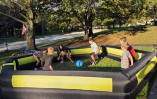 We’ll bring the net, ball, and foul lines to set up the perfect volleyball court or try the NEW SLAM X! It’s like 4 Square and Volleyball combined! (Sand not included). We can supply a regulation volley ball or a softer, kid friendly ball. Go-N-Play is always looking out for the safety of our participants!