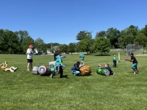 The classic game of soccer brought to your back yard! We will set up our pop up nets and line out a field that fits the area we’re playing on. Have you ever played soccer with THREE teams and THREE nets at ONE TIME?! Ask us how we can make this classic game a bit more challenging!
